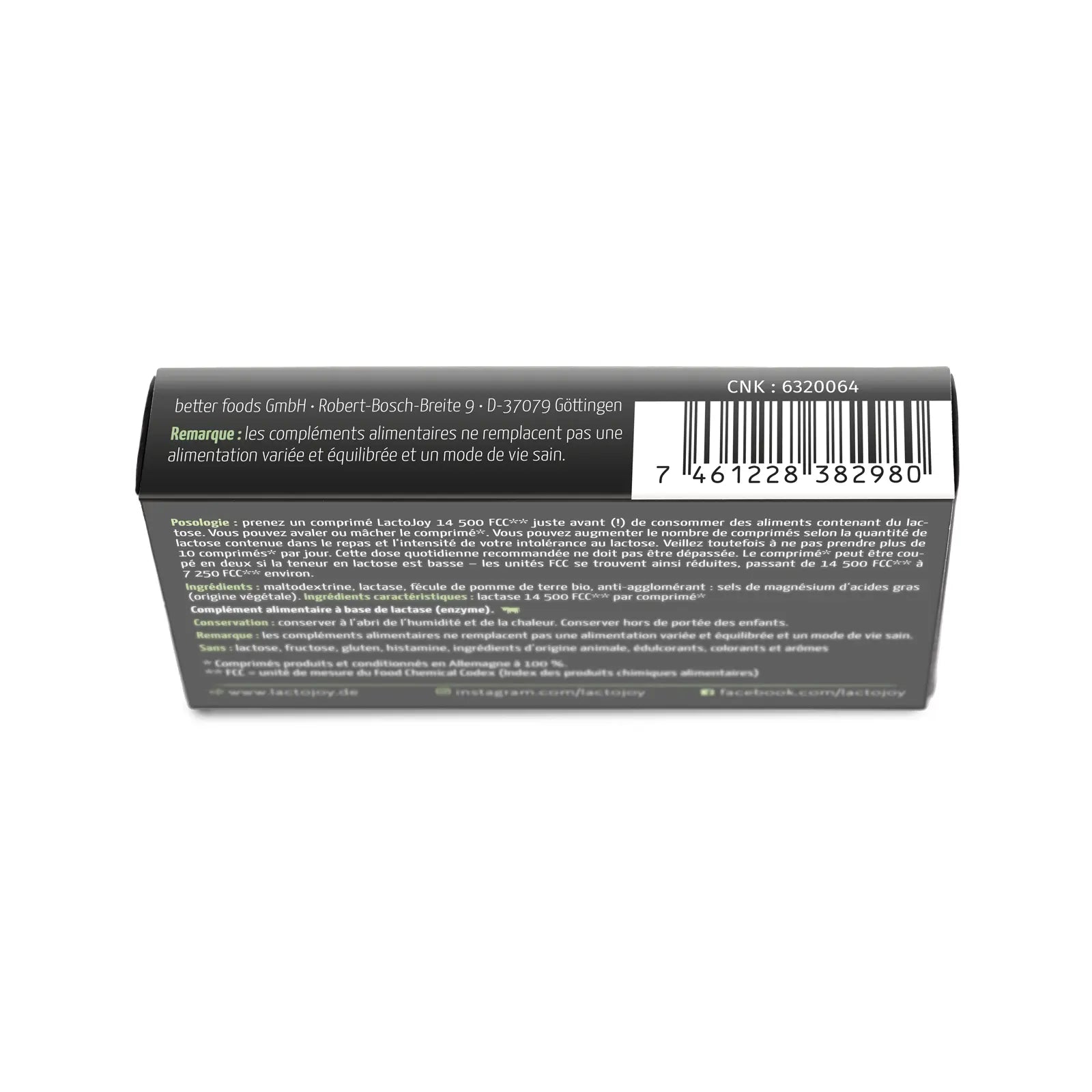 Lors de la production de LactoJoy, il était important pour nous que les comprimés soient particulièrement faciles à avaler . C'est pourquoi notre objectif est de produire le plus petit comprimé de lactase à croquer possible jusqu'à présent sur le marché à ce dosage. Pour que vous puissiez vraiment profiter de votre repas, nous avons en outre choisi une tablette sans goût , bien entendu sans arômes artificiels.