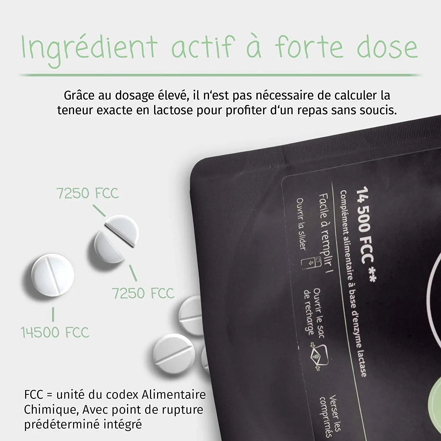 Grâce à la forte dose d’enzyme, pas besoin de calculer la quantité exacte de lactose, vous pouvez profiter de votre repas en toute sérénité.