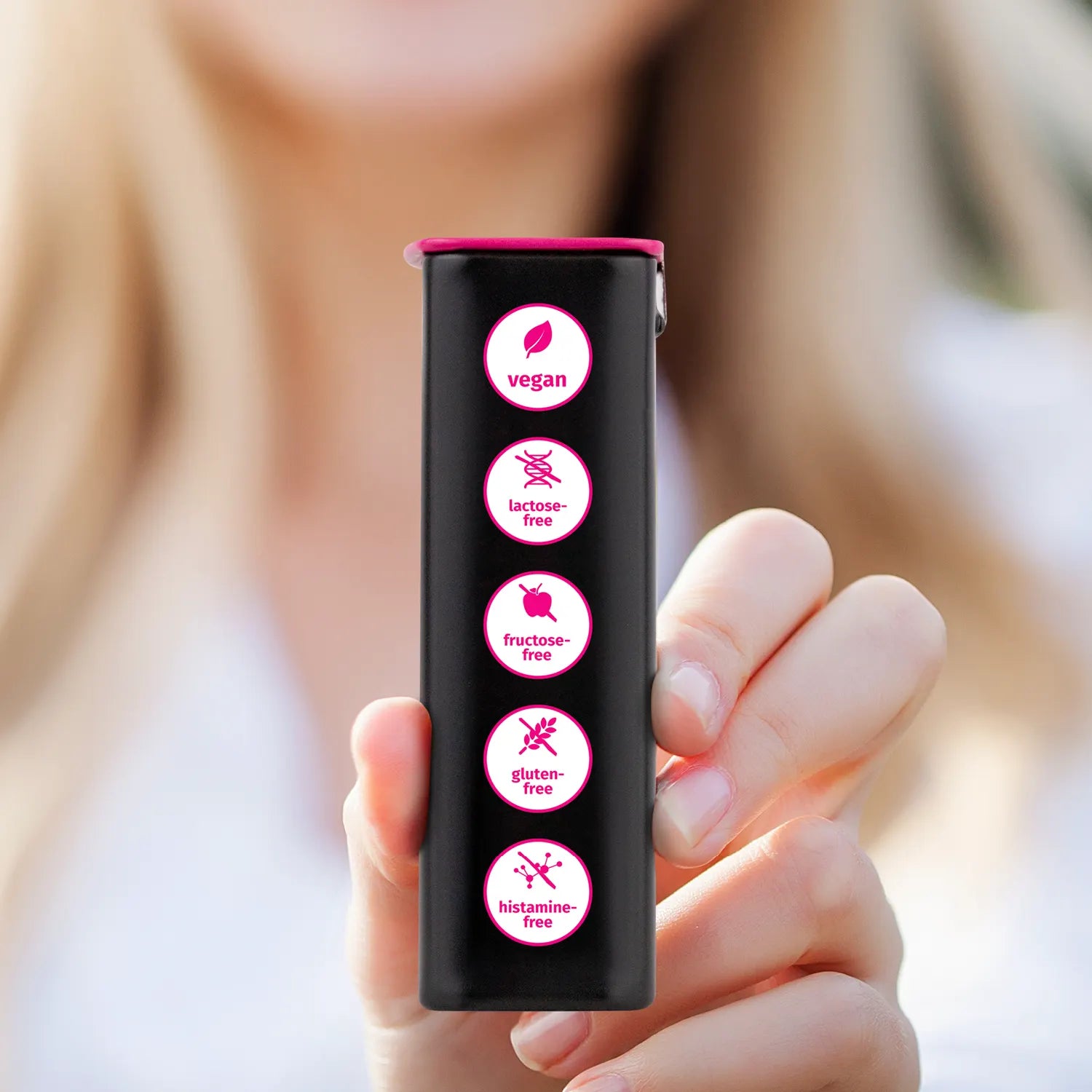 When creating LactoJoy lactase capsules, we focused not only on effectiveness but also on design and usability. That's why our capsules are small and easy to swallow, despite their high dosage. They are tasteless and completely free from artificial aromas, making them pleasant to take anytime. But quality doesn't stop with the capsule itself. Our stylish packaging makes a statement: Lactose intolerance isn't an illness, but it's actually rather normal. It's simply a part of life for many people, but it doesn't have to be a limitation. With LactoJoy, you'll never feel like you're carrying around outdated medication, but a smart everyday companion.